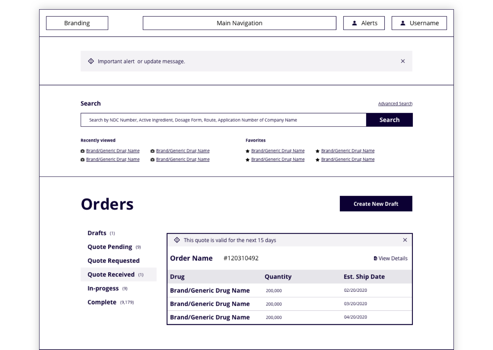- Medium fidelity design comps—grayscale representation of the interface with some brand styling applied.
