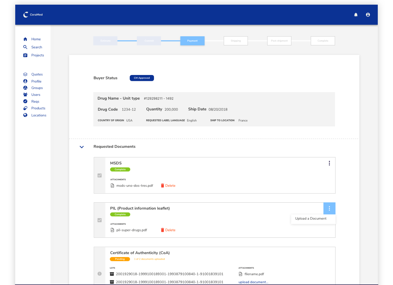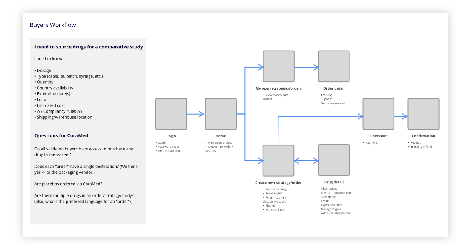 CoraMed saw the opportunity to reinvent this process and develop a solution that would open up the channels between buyers and manufacturers. Allowing for a more efficient and streamlined approach. Purpose UX and I were tasked in helping design a solution.