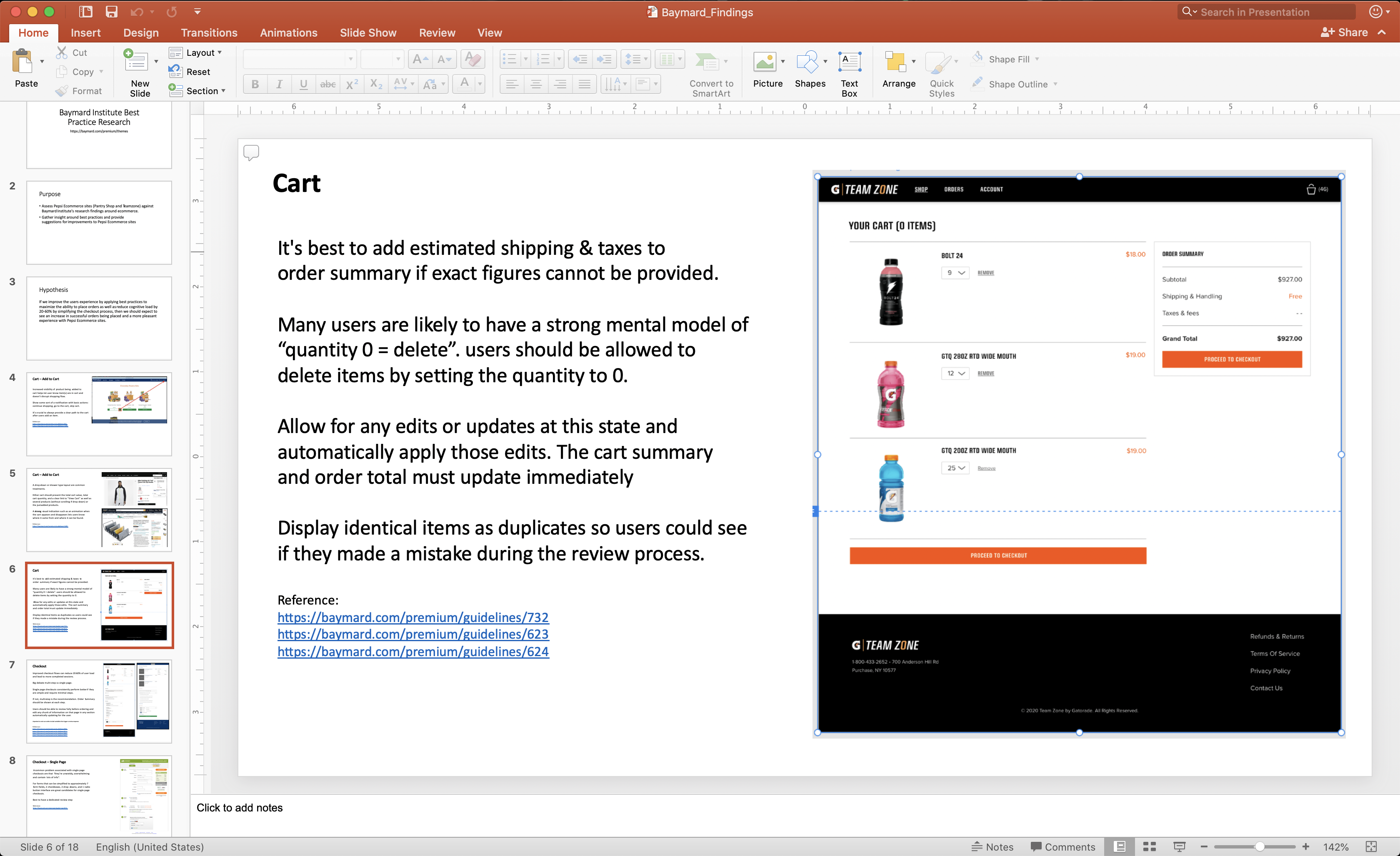 Attention was then on future state ideas and conducting research regarding industry best practices via Baymard Institute’s premium library. Through these findings Pepsi Ecomm was provided with benchmarks, recommendations and suggested improvements that could be applied to all of their ecommerce platforms.